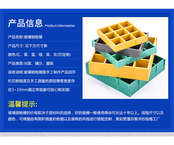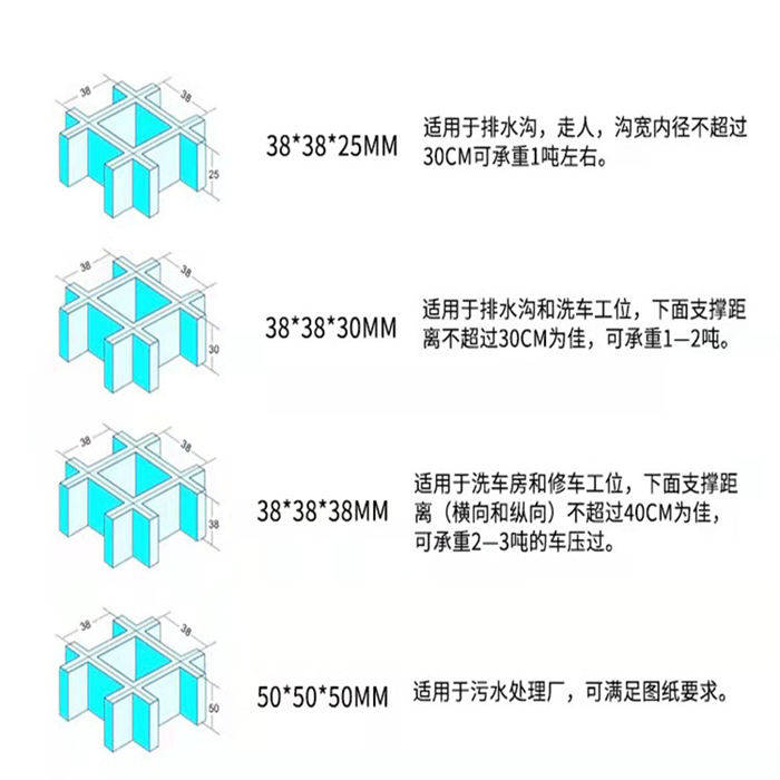 采用高分子復合材料,順應材料發展趁勢,不易老化、不變形,抗酸堿、耐腐蝕、正常使用與建筑物同壽命,消除傳統格柵不適應酸性污水的狀況。傳統的格柵易老化、易變形,抗酸堿差、耐腐蝕差